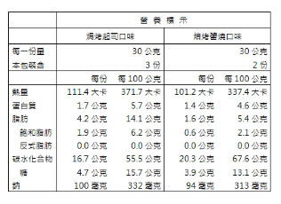 熱量 蛋白質 脂肪 飽和脂肪 反式脂肪 碳水化合物 糖 鈉 |